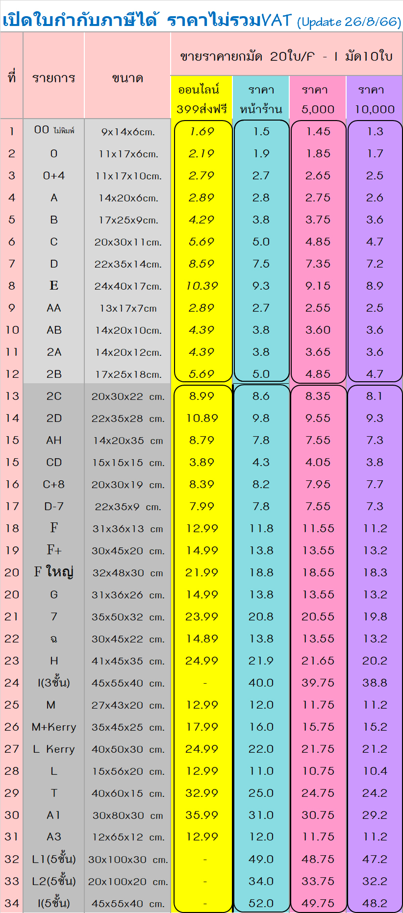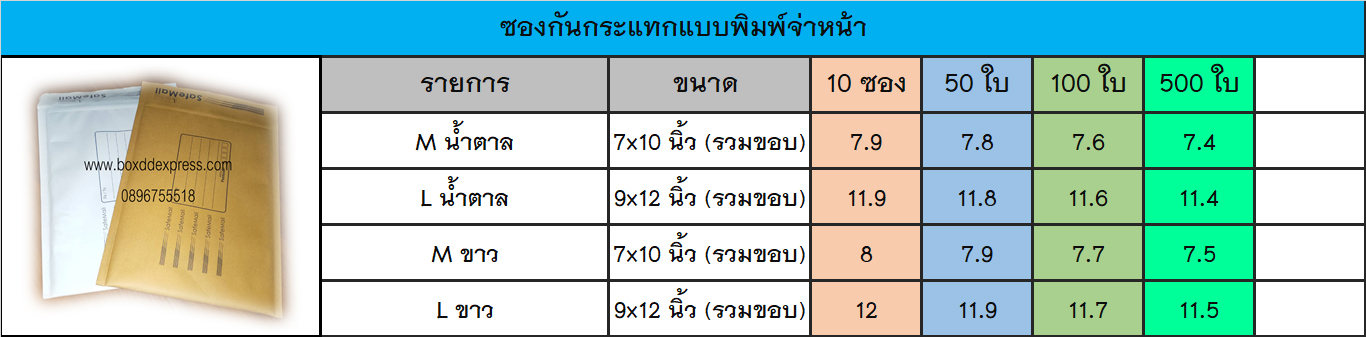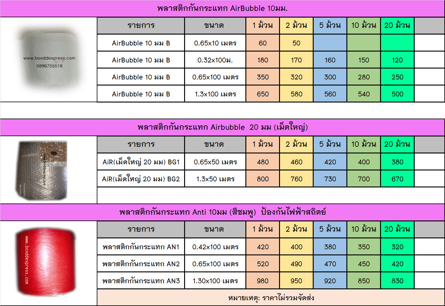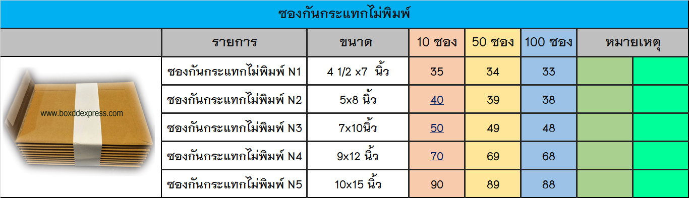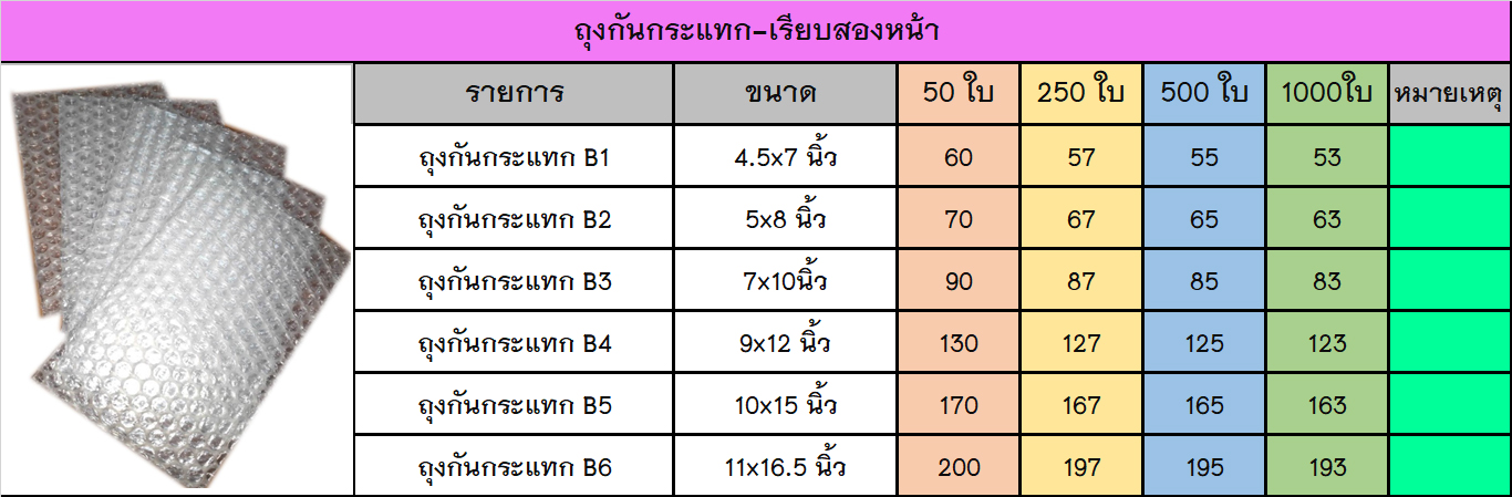หมายเหตุ บับเบิ้ล กระดาษน้ำตาล ถุงกันกระแทก และสินค้าบางชนิดที่ต้องแยกแพ็ค